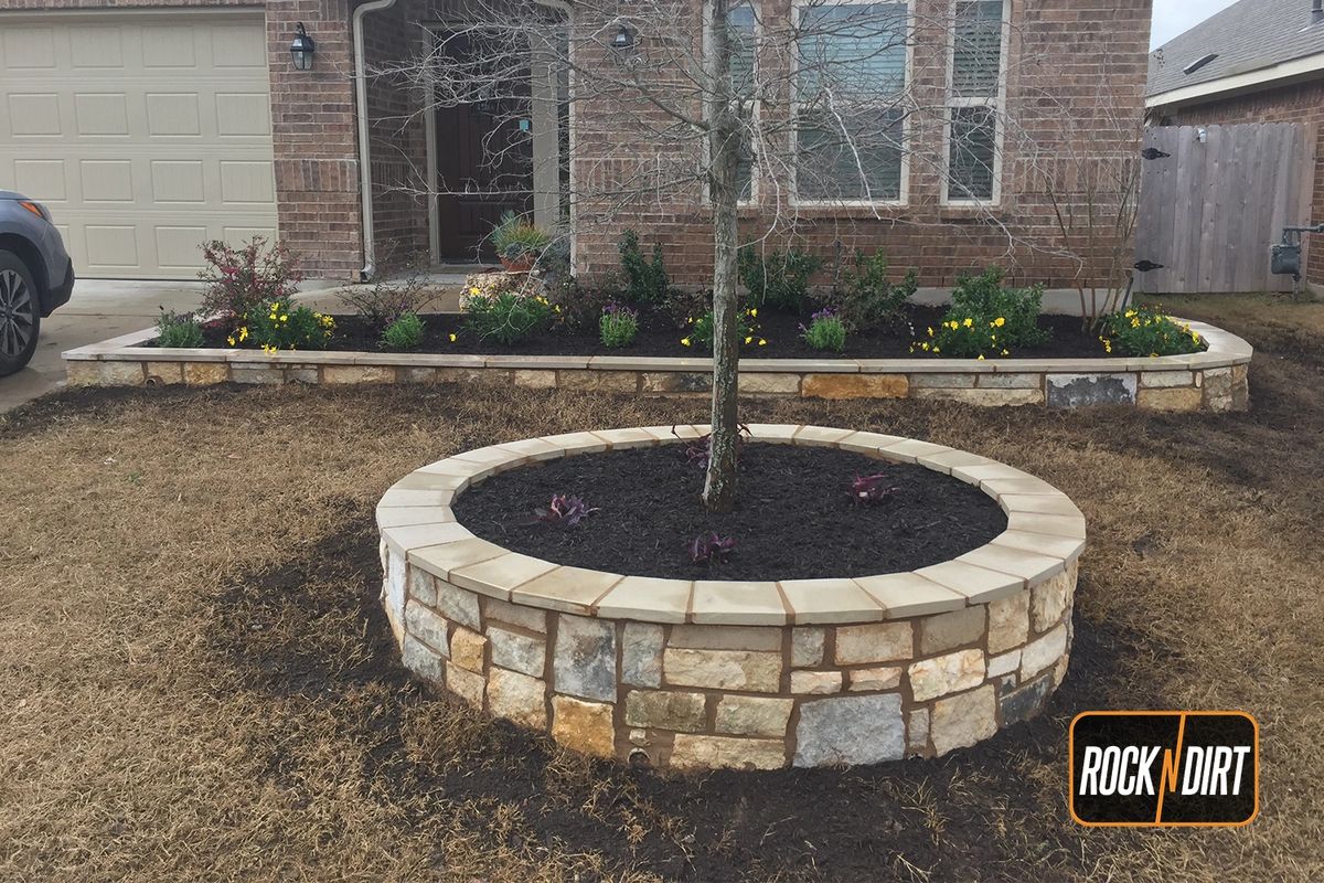 Flower Bed Foundation Border. Decorative Rock and more. There are 54 50lb bags of stone or sand per cubic yard.